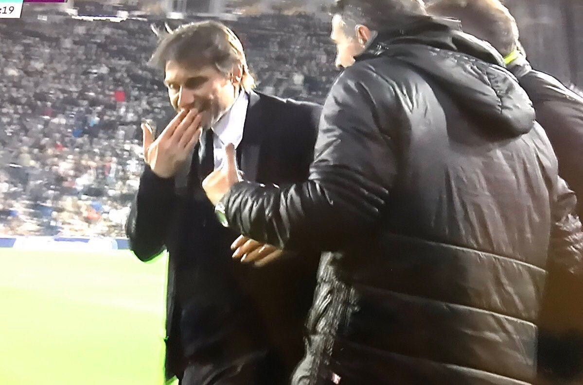 Partita tirata, nel match point il Chelsea si fa attendere. Non la chiude subito contro il WBA, anzi. Poi ecco il gol e l’eroe che non ti aspetti: Michy Batshuayi. E’ il minuto numero 82 e arriva la rete dell’1-0 per i Blues. O meglio, la rete dello scudetto, quella che aritmeticamente ha consegnato il titolo al Chelsea. Come una sentenza. E Antonio Conte in panchina esplode di gioia. Corre, salta, vola e si lancia verso la panchina che è schizzata in campo per esultare insieme a lui. Abbraccia tutti, anche Courtois che lascia i pali e si tuffa sopra il manager e i suoi collaboratori. Conte si fa anche male ad un labbro nella foga dell’esultanza, ma l’adrenalina è troppa. La gioia incontenibile, così come la passione che sulla panchina Blues non ha fatto mai mancare. Conte Style.