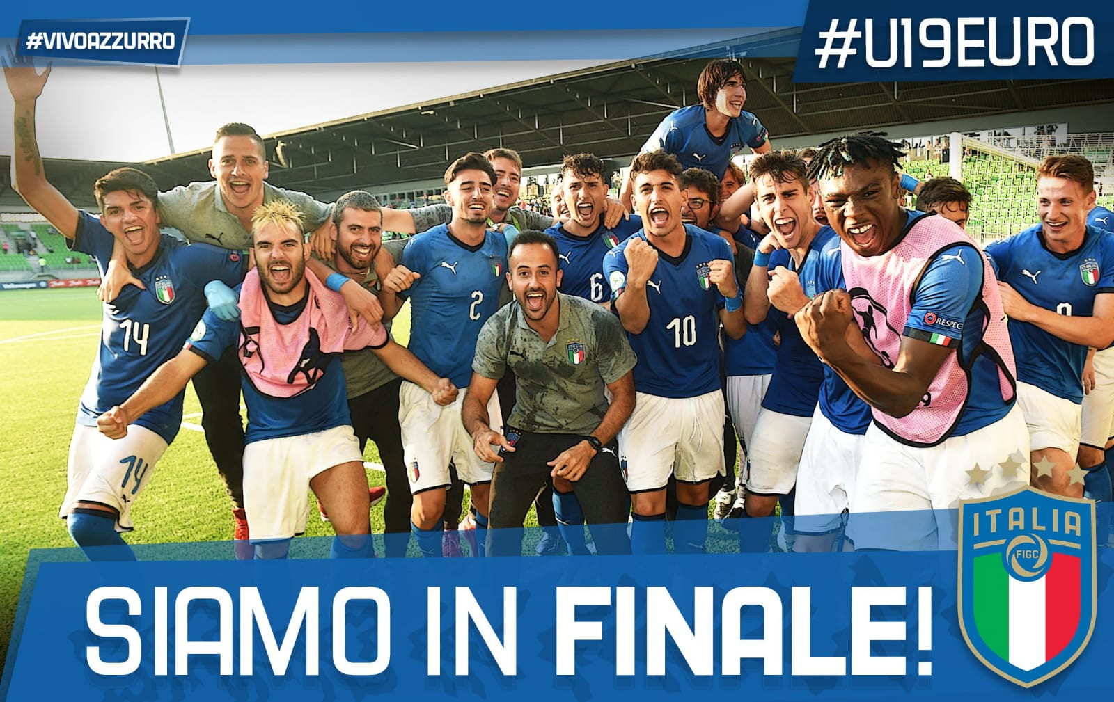 Eccola l’Italia che quest’anno può salire sul tetto d’Europa, squadra seguita con attenzione e vicinanza anche da Roberto Mancini che via social ha fatto i complimenti a tutta l’Under 19 e a Nicolato: “Una finale di Euro19 meritata. In bocca al lupo per domenica!”, il tweet del ct azzurro.