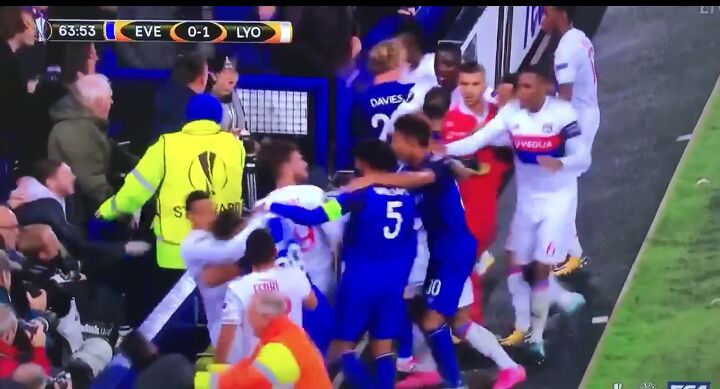 Everton-Lione. Al 63esimo della sfida di Goodison Park, si innesca una rissa. Un battibecco animato tra Traore e Williams coinvolge sempre più giocatori, e dall’area di rigore di sposta verso la linea di fondo fino a superarla e ad arrivare a ridosso dei tifosi dell’Everton. Questi ultimi però invece di spostarsi iniziano a spintonare i giocatori a loro volta, tanto che lo steward riesce a fatica a contenerli. Uno di questi tifosi aveva anche in braccio un bambino piccolo, scena quest’ultima che ha creato non poco dibattito sui social. Nessuna conseguenza fortunatamente per nessuno ma delle immagini che non sono passate inosservate nella serata di Europa League.