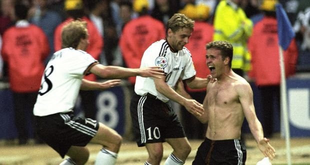 Poborský affonda il Portogallo con uno straordinario pallonetto. I tedeschi faticano con la Croazia di Šuker, ma passano grazie ai gol di Klinsmann e Sammer. In semifinale, i cechi battono ai rigori la Francia, con il rigore decisivo di Kadlec che fa impazzire la nazione. Tra Germania e Inghilterra, a Wembley, è vera battaglia. La nazionale di Vogts rischia di affondare. Ma si sa, come dice Gary Lineker, “alla fine vincono i tedeschi”. Dopo l’1-1 al termine di 120’ epici, Southgate sbaglia il rigore decisivo, mentre Möller manda la Germania in finale. Londra, 30 giugno 1996, 73.611 spettatori, tra i quali la Regina Elisabetta. Nedvěd e compagni giocano un’ora di grande calcio e passano in vantaggio con il rigore di Berger. La Germania è disperata e manda in campo la terza punta, Oliver Bierhoff. 17 gol con l’Udinese gli sono valsi la chiamata in Nazionale, al 69’ entra al posto di Scholl. Bastano quattro minuti per firmare la rete del pari. Si va ai supplementari, come nel 1976. Stavolta, però, in paradiso va la Germania. Bierhoff realizza al 95’ il primo golden goal della storia degli Europei. Serviva evidentemente un’altra invenzione per chiudere il conto con un destino lungo vent’anni.