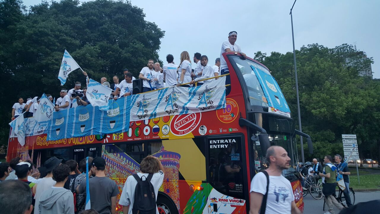 La Spal in serie A dopo 49 anni, Ferrara attende i suoi eroi in Piazza Trento-Trieste. Cori, striscioni, bandiere bianche e celesti e grande entusiasmo per le vie del centro. La festa è iniziata ieri allo stadio Mazza, dove i circa settemila presenti si sono scatenati per questa doppia, inattesa, promozione. Il pullman con a bordo la squadra gira per le vie della città, guidata dal condottiero Leonardo Semplici. Ancora pochi chilometri e poi sarà un bagno di folla e… di birra.