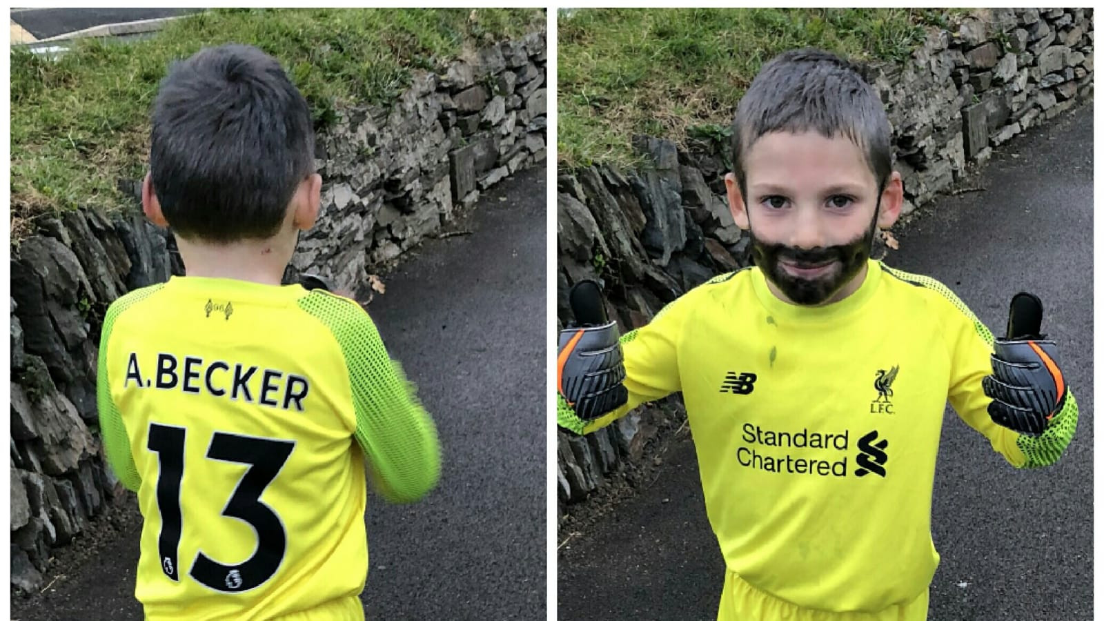 Che, come ogni bambino della sua età, si travestirà e andrà per le case a fare la fatidica domanda: “Dolcetto o scherzetto?”. Lo farà vestito da…Alisson, appunto. Tutto di giallo, dai calzettoni alla maglietta, proprio come si presenta ogni domenica il portiere del Liverpool. Per fare le cose al meglio, papà Tristan ha voluto anche dipingere sul volto del figlio la folta barba del numero uno dei Reds. Poi guantoni alle mani e scarpette ai piedi, giusto per non farsi mancare proprio niente. Della serie “un portiere da paura”.