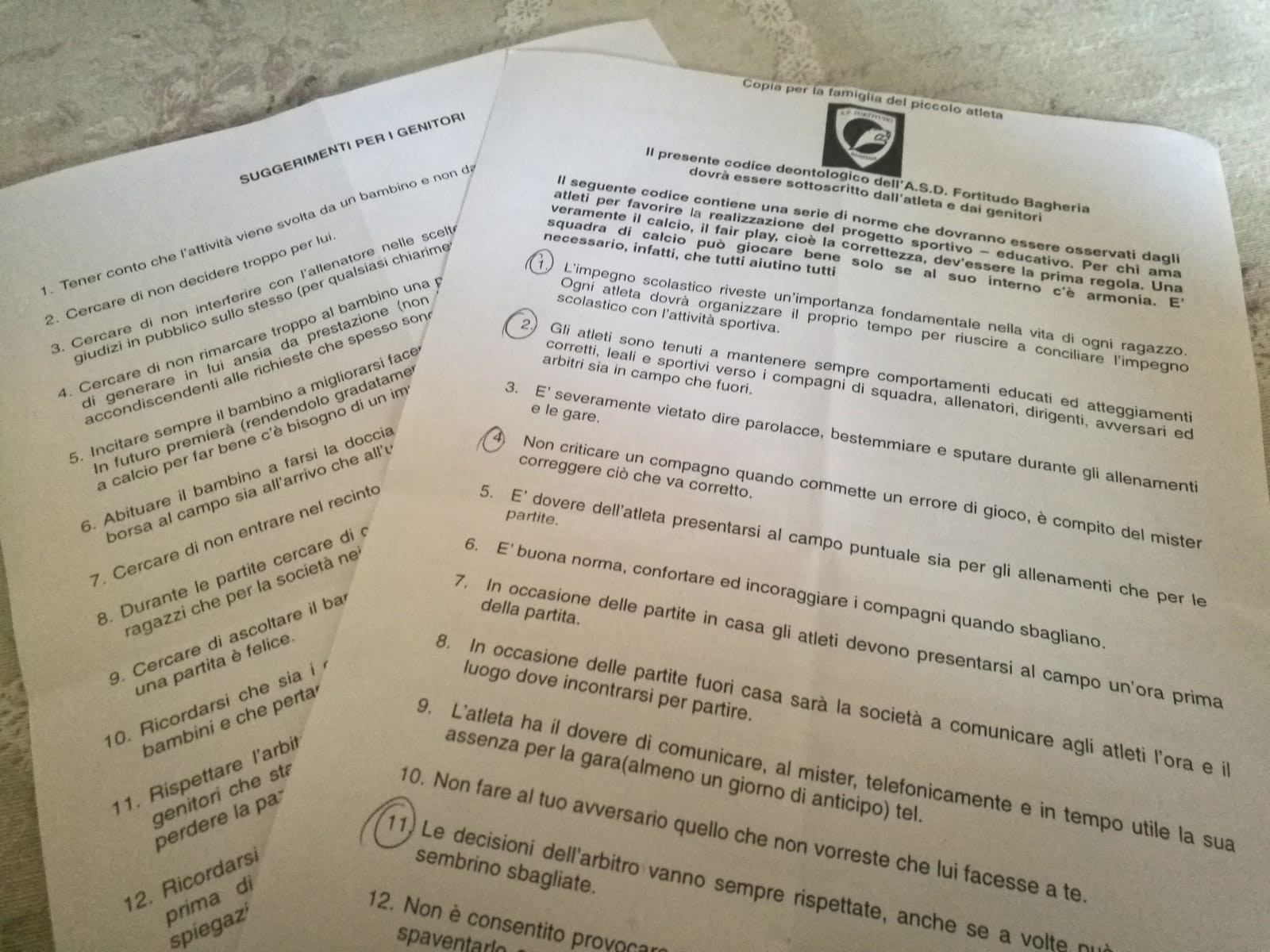 Un codice deontologico per un uomo ed un giocatore…migliore. L’idea arriva dalla Sicilia, da Bagheria a poco più di 15 km da Palermo. “Per chi ama veramente il calcio, il fair play, cioè la correttezza, deve essere la prima regola” si legge nel codice introdotto dalla Fortitudo Bagheria, una delle scuole calcio della città che ha deciso di lanciare un “calcio 2.0” attraverso delle regole che, nonostante spesso dovrebbero risultare tacite, messe nero su bianco hanno avuto un grande successo.