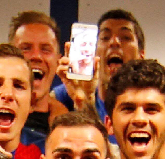 Foto di gruppo con… Neymar in collegamento! E quel tifoso madridista che esulta al gol di Messi…