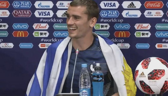 Un Mondiale vinto da poche ore e una bandiera in conferenza stampa. Quella francese? Assolutamente no. Antoine Griezmann si è infatti presentato in conferenza stampa con una bandiera dell’Uruguay. Un Paese che l’attaccante dell’Atletico Madrid ama follemente per diversi motivi.