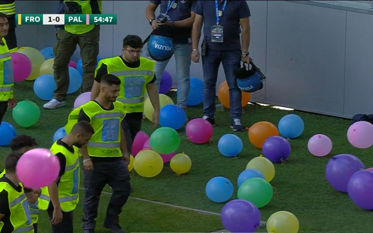 Due minuti di sospensione per via di decine di palloncini lanciati in campo dallo spicchio riservato ai tifosi del Palermo. È quanto accaduto al “Benito Stirpe” di Frosinone nel match tra i giallazzurri e i rosanero. È il 10° minuto del secondo tempo quando i supporters rosanero, dal settore ospiti, hanno lanciato tanti palloncini colorati. Alcuni di questi sono arrivati in campo, motivo per cui l’arbitro, il signor Antonio Giua di Olbia, ha interrotto il gioco per liberare il terreno.