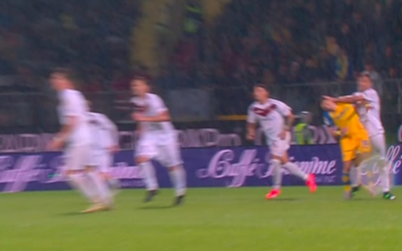 Minuto 39 di Frosinone-Reggina e Cionek commette una clamorosa ingenuità.