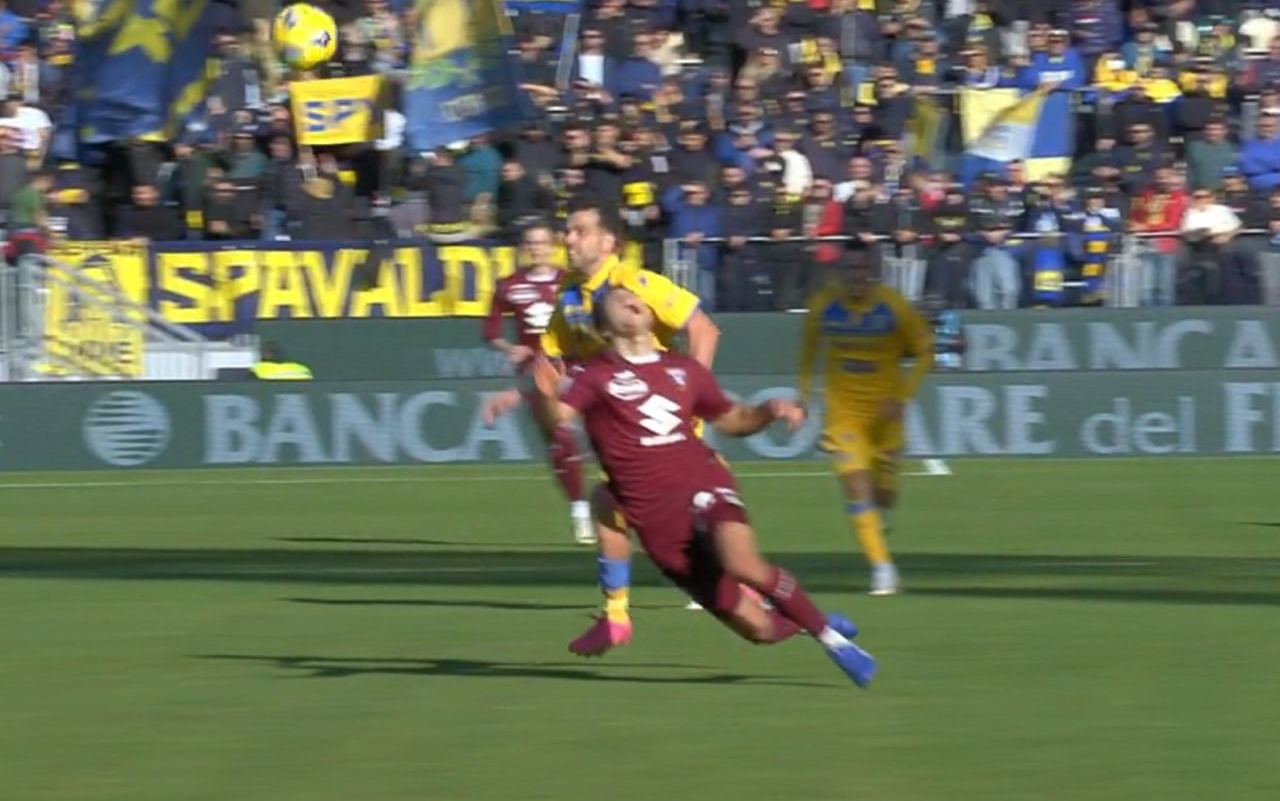 Rivedendo l’immagine, il contatto tra Kaio Jorge e Buongiorno sembra esserci (seppur lieve). L’arbitro non ha però potuto assegnare il calcio di rigore al Frosinone a causa di un precedente fallo a centrocampo di Gelli ai danni di Ricci.