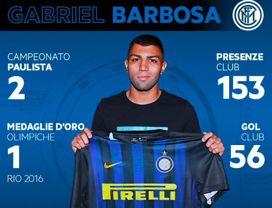 “Diventare un giocatore dell’Inter nel giorno del mio compleanno è stato un regalo magnifico”, ha detto Gabriel Barbosa. “Diventare parte di una società che ha fatto la storia del calcio è un’emozione fantastica. Ho già potuto assaggiare la passione dei tifosi interisti e non vedo l’ora di poter scendere in campo a San Siro e giocare davanti a loro. Per me è un sogno che si realizza. Ringrazio tutti, ci vediamo presto”