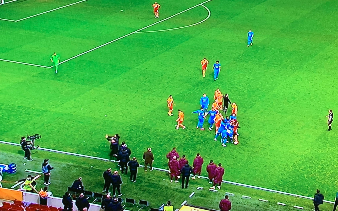 La tensione era già alta dopo la gara d’andata e al 34′ di Galatasaray-Marsiglia si è fermata per alcuni istanti per una rissa scaturita dal lancio di alcuni oggetti in campo.