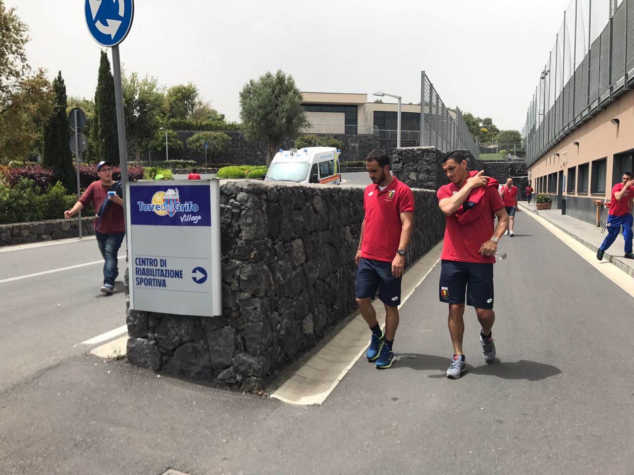 In ritiro in Sicilia per tenere alta la concentrazione, dare seguito alla bella vittoria dell’ultimo turno contro l’Inter e provare a mettere una seria ipoteca sul discorso salvezza. E’ questo l’obiettivo del Genoa, che è volato a Torre del Grifo, il centro sportivo del Catania, per preparare al meglio la delicata sfida di domenica al Palermo. Terminata la seduta mattutina per gli uomini di Juric: Giovanni Simeone – che ha anche ricordato il periodo del padre sulla panchina del Catania – e compagni tutti insieme a pranzo. Ecco le foto.