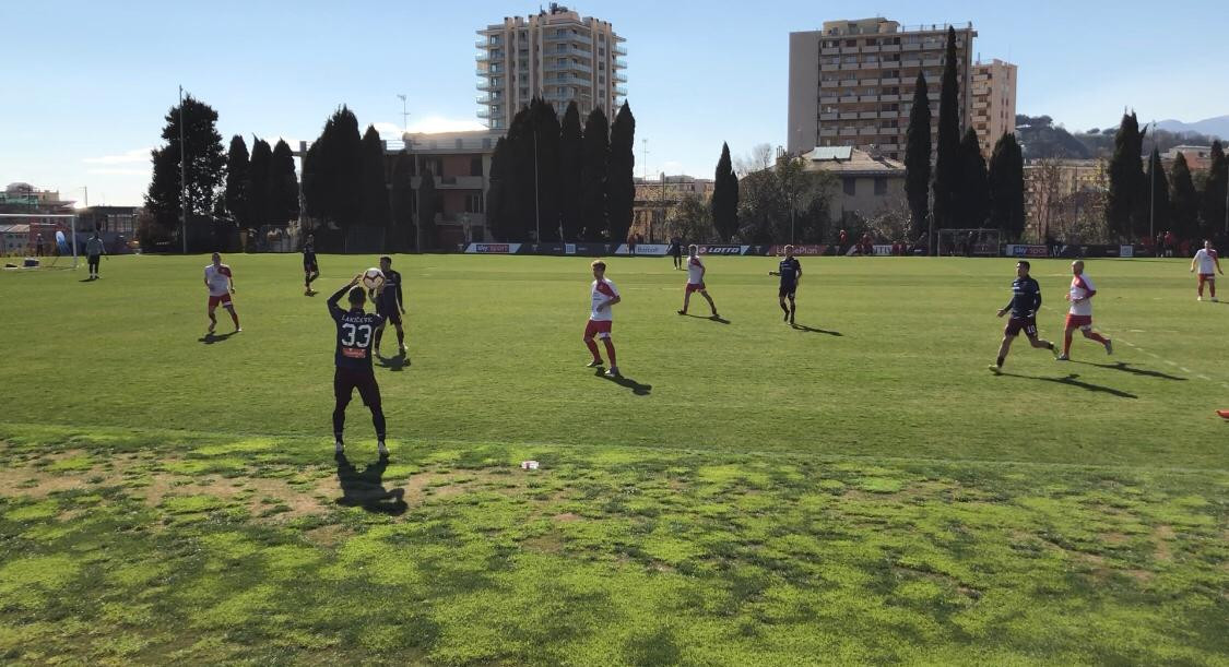 Per prepararsi ai novanta minuti della Dacia Arena, rossoblu in campo nel pomeriggio al Signorini di Pegli per un’amichevole con l’Arenzano, formazione che milita nel campionato di Promozione, che ha visto nel primo tempo scendere in campo con un 4-4-2 Jandrei tra i pali, Lakicevic, Biraschi, Gunter e Pezzella in difesa. In mediana spazio a Dalmonte, Mazzitelli, Schafer e Daniel Bessa, con la coppia d’attacco formata da Gianluca Lapadula e Andrea Favilli. Tripletta Lapa, tra i più in forma e uomo in più da recuperare un vista del rush finale del campionato per Prandelli, due i gol per Favilli – al lavoro per ritrovare la condizione migliore dopo lo stop di fine gennaio che lo ha tenuto ai box negli ultimi due mesi – e uno a testa per Gunter, Bessa e Schafer, a fissare il risultato finale del primo tempo sull’8-0 per il Grifone.