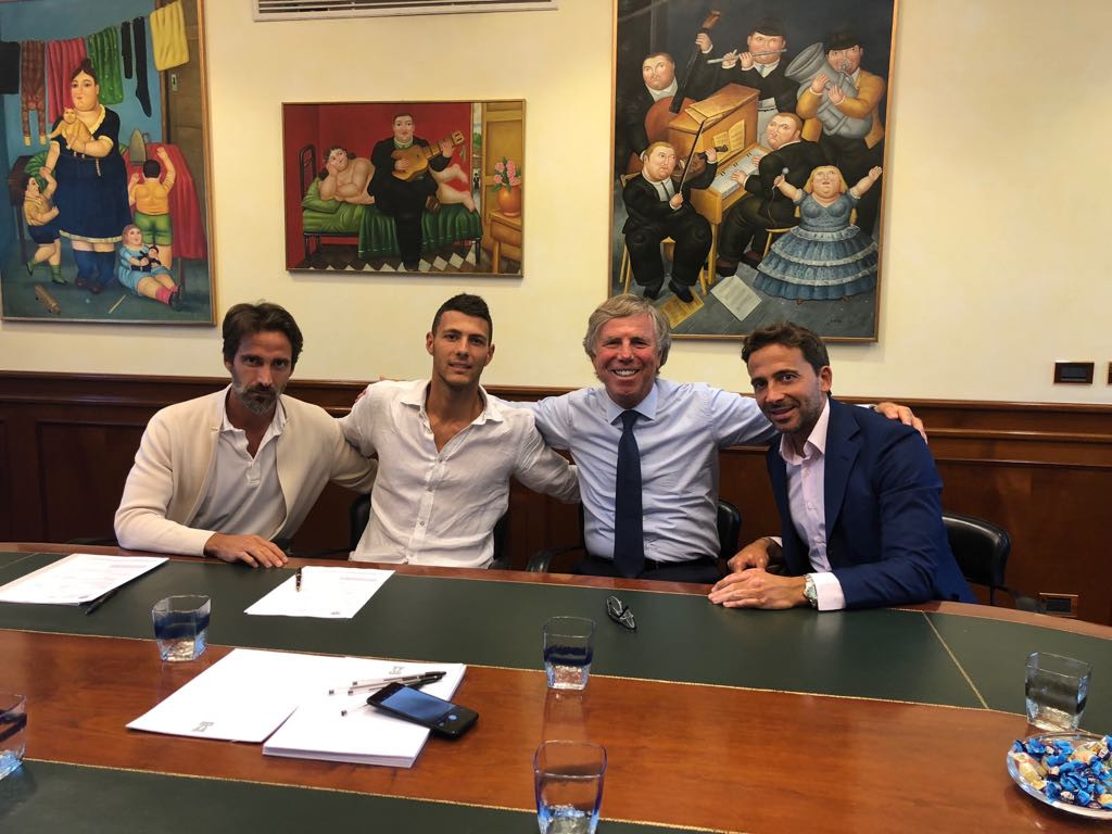 L’ex Sassuolo nella foto della firma è in compagnia del presidente