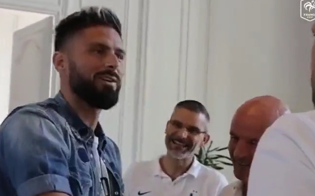 All’arrivo nel ritiro della nazionale francese, a Clairefontaine, l’attaccante del Milan ha scherzato con alcuni componenti dello staff tecnico, come mostra un video pubblicato dall’account ufficiale dei Bleus su Twitter.