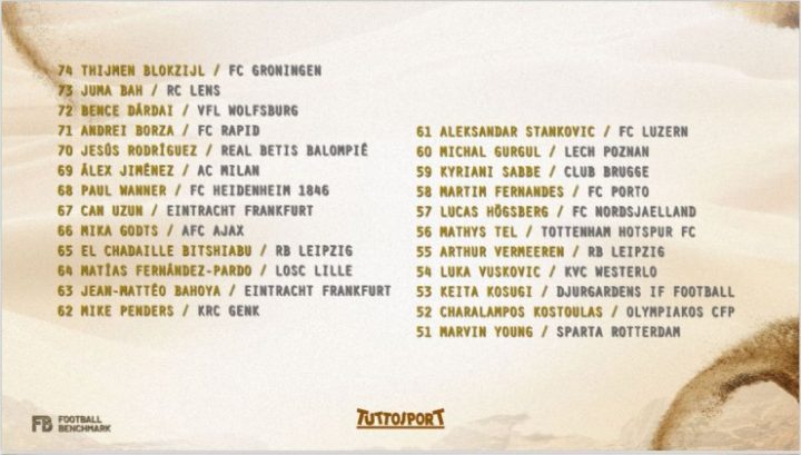 In Top-25 ci sono due difensori che, nel corso dell’estate del 2024 hanno salutato la Serie A. Il primo è Jan-Carlo Simic (24º) che ha ha lasciato il Milan un anno fa per andare a mettersi in mostra all’Anderlecht.