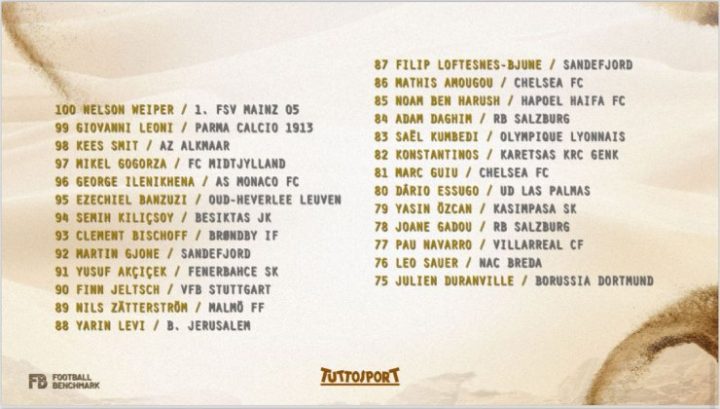 Il riconoscimento viene assegnato da TuttoSport che, grazie a un algoritmo progettato da Football Benchmark, ha lanciato la classifica dei 100 candidati. Per l’Italia ci sono Giovanni Leoni (99º) e Pietro Comuzzo (18º).