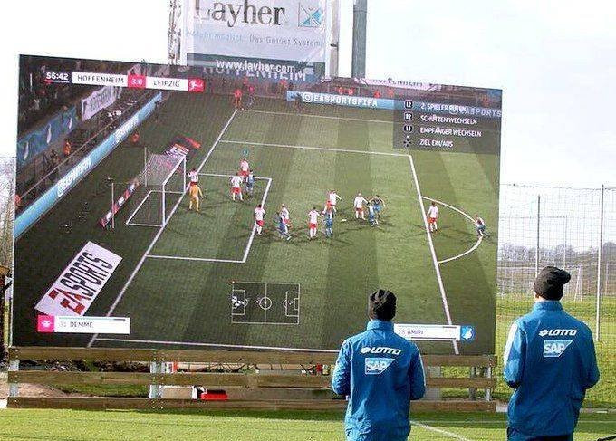 In Bundesliga però l’Hoffenheim ha deciso di installare un maxi-schermo anche a ridosso del campo di allenamento. Il motivo? Guardare azioni, punti deboli e di forza degli avversari ma anche i propri per poter correggere subito durante una seduta ciò che non va.