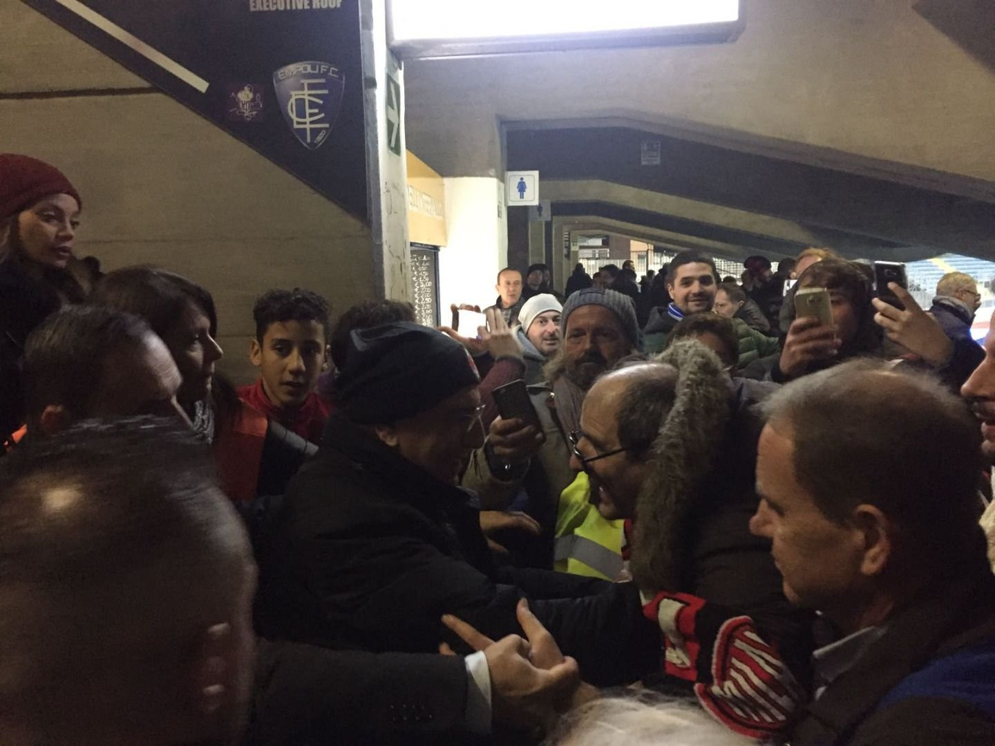 Una vittoria convincente e una bella serata per il Milan, vittorioso ad Empoli per 4-1 con Lapadula protagonista, autore di una doppietta. E al termine dell’incontro, Adriano Galliani ha voluto complimentarsi con la squadra personalmente, scendendo negli spogliatoi. Durante il tragitto però è stato assalito da alcuni tifosi rossoneri presenti al Castellani, che con affetto gli chiedevano “resta con noi”. Il closing con i cinesi è previsto il 13 dicembre e l’attuale AD non ha risposto, limitandosi soltanto a sorridere.
