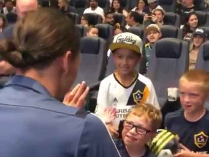 Soprattutto con questo svedese, che è caldissimo. 21 partite giocate, 20 gol e 3 assist. L'ultima doppietta è arrivata nell'ultima giornata di campionato a cui ha preso parte, ovvero quella contro i Seattle Sounders. 2-2 il risultato finale, un pareggio che sicuramente non può soddisfare Zlatan, il quale però, precedentemente al calcio d'inizio, si è reso protagonista di un simpatico siparietto.
