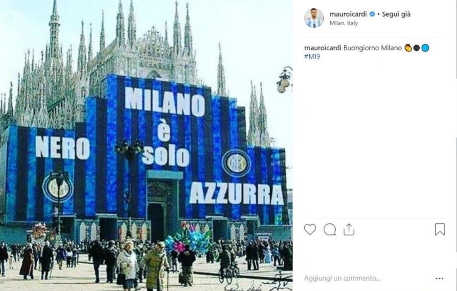 Il Duomo tinto di nerazzurro e una frase improvvisa dopo giorni di silenzio: “Milano è solo nerazzurra”. Così Mauro Icardi è tornato a parlare, anche solo via social, dopo il derby vinto dall’Inter ieri sera. L’argentino non era nemmeno in tribuna: una scelta presa e condivisa con la compagna Wanda per evitare di catalizzare troppo l’attenzione su di sé durante le gare della sua squadra.