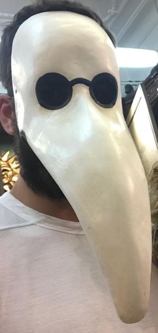 foto li ritrae in un negozio di costumi, con indosso…una maschera. Nera per la popstar,