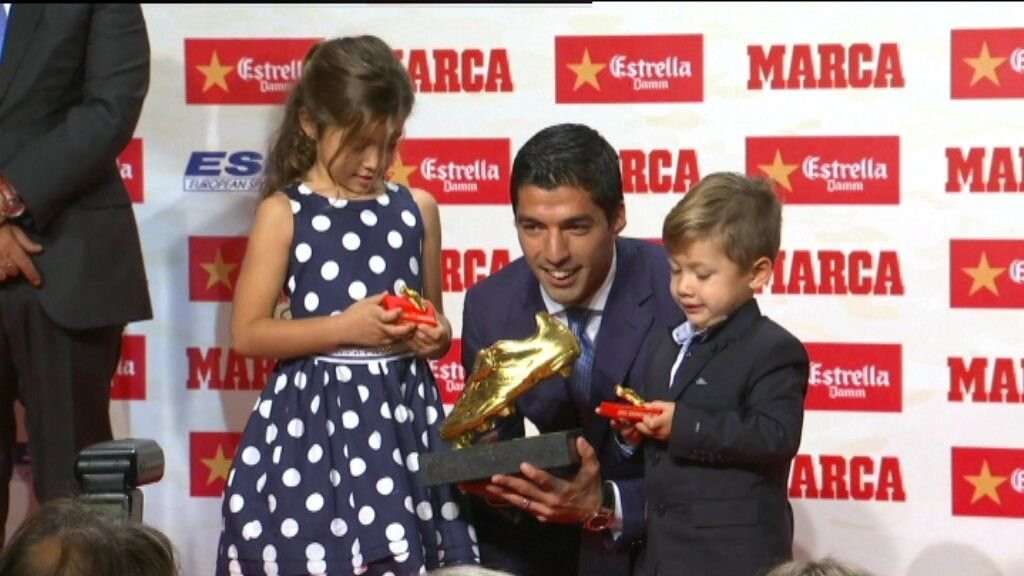 Un Luis Suarez in formissima, quello presentatosi alla consegna della Scarpa d’oro. L’attaccante del Barcellona, reduce assieme ai suoi compagni dal 4-0 al Manchester City di Guardiola, ha ricevuto il premio come cannoniere dell’anno, consegnato proprio dai figli del campione del Barça. Nessuno come lui, anche col microfono in mano: “Mio figlio mi ha chiesto perchè non ho segnato, però era contento dei tre gol del mio…vicino“. Un vicino, ingombrante: Leo Messi. Che però, nella stagione scorsa è stato dietro, per numero di gol, all’uruguayano: 40 per Suarez, che ha segnato perfino più del record di Higuain in Serie A: 36 gol.