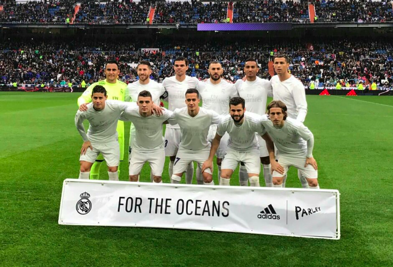 Il risultato migliore potrete notarlo dalle foto: maglia quasi totalmente (apparentemente) priva di dettagli a differenza della sola numerazione, rimasta invariata rispetto alla divisa tradizionale, e la sensazione di vedere giocare il Madrid con una maglia bianca qualsiasi. In caso non aveste conosciuto la storia relativa ad un’iniziativa speciale, ovviamente: nel segno…dell’acqua. Quella ripulita dai rifiuti stagnanti in ogni oceano, da una parte, e quella caduta sul Bernabéu dall’altra. Che ha quasi regalato alla camiseta del Real Madrid, involontariamente, un effetto da maglia d’epoca.