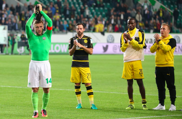 Un’immagine inusuale, soprattutto se ti chiami Blaszczykowski e sei entrato nella storia del Borussia Dortmund. Da capitano del Wolfsburg, il polacco ex Fiorentina è stato ieri protagonista di una bella scena, al termine di Wolfsburg-BVB. I suoi ex compagni lo hanno accolto a fine gara e insieme sono andati a ringraziare i tifosi gialloneri. Per Kuba cori e applausi, nonostante l’addio in estate. Il video: