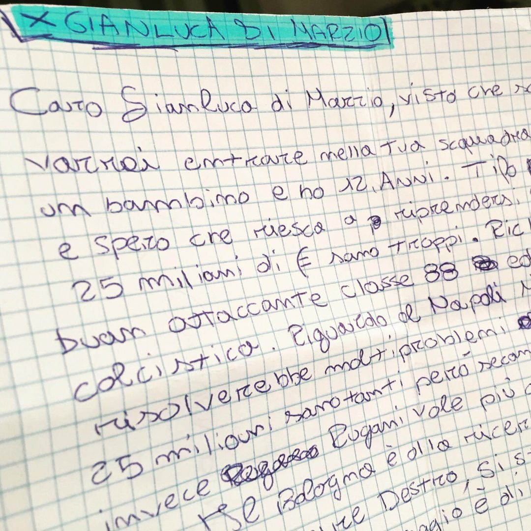 La lettera non solo mi è arrivata, ma è stata anche molto apprezzata e pubblicata sui miei vari profili social. E adesso conto di inserire nella mia squadra mercato, per il futuro, tanti giovani che sognano di intraprendere questa strada. Proprio come il piccolo Tommaso, perchè non c’è nulla di più bello che veder realizzare i desideri di un bambino. E sì, mi sono davvero emozionato.