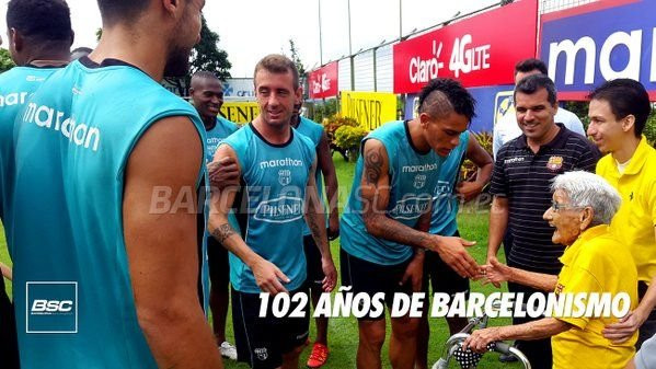 Il Barcellona ha una tifosa speciale. No, non stiamo parlando del Barça blaugrana, anche se lo stemma è molto simile e la nascita del club si deve al catalano emigrato Eutimio Perez, ma del Barcelona Sporting Club, squadra ecuadorena. E la tifosa in questione è una nonnina di 102 anni! Si chiama Maria Guadalupe e tifa Barcelona da sempre, dal 1925 (anno di fondazione del club). Novantuno anni di attaccamento a questa squadra che ancora segue e la fa divertire come una ragazzina. Perchè dentro lei si sente così, ancor di più dopo aver conosciuto i giocatori della sua squadra del cuore! Non si scherza, è tutto vero come il suo sogno diventato realtà e come la sua maglia amarilla… numero 102, ovvio. E allora ecco Guadalupe scendere in campo, inizia a dare qualche calcio al pallone insieme al resto della squadra, si diverte insieme ai suoi beniamini. Calciatrice per un giorno.