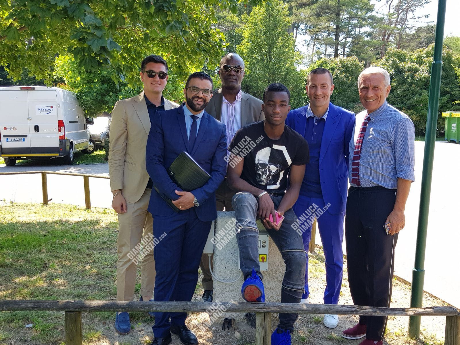 Il sorriso dopo la firma, Yann Karamoh con gli agenti e gli intermediari della trattativa. “Trasferimento a titolo temporaneo”, rinnovo col Caen e poi prestito con obbligo di riscatto all’Inter. E un sorriso e una foto per celebrare la firma.