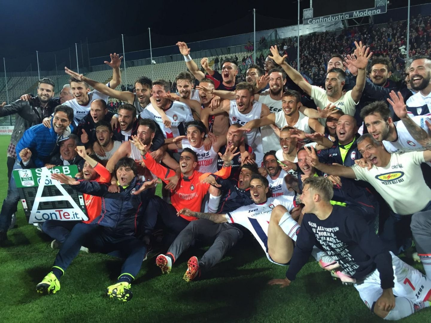 Ma andiamo con ordine. Il preludio di questa quattro giorni di sensazioni paradisiache si ebbe venerdì sera. Modena, stadio Braglia. Il Crotone si gioca la Serie A, per la prima volta nella sua storia. Al 17′ Luppi prova a fare da guastafeste, ma ormai il copione era stato già scritto: fato, destino, chiamatelo come volete, ma fatto sta che il gol di Palladino manda in estati un’intera città, un’intera regione: il Crotone vola in A. Festa grande, notte brava e una promozione che arriva anche sui muri del cimitero.