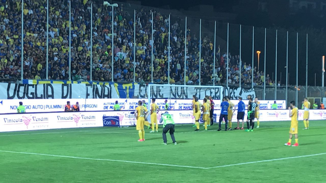 Epilogo inimmaginabile al Matusa, dove il Frosinone pur in 11 contro 9 perde 1-0 contro il Carpi vede svanire il sogno della promozione in Serie A. E’ stata una partita tesa, nervosa e contraddistinta da molti episodi controversi. Un nervosismo sfociato in due espulsioni per il Carpi, rispettivamente a Struna e Gagliolo, a cui vanno sommati anche gli allontanamenti di Castori e del suo vice dalla panchina. Nonostante questo, il finale che nessuno si aspettava: lo 0-0 che avrebbe qualificato il Frosinone viene sbloccato da Gaetano Letizia al minuto 86. Estasi Carpi, dramma (sportivo) per il Frosinone, che a fine partita viene fischiato e contestato sotto la curva. Curva che ha voluto anche la presenza di Pasquale Marino, chiamato in campo da Frara. Facce incredule e lacrime opposte ai sorrisi del Carpi, che adesso aspetta in finale la vincente tra Perugia e Benevento.