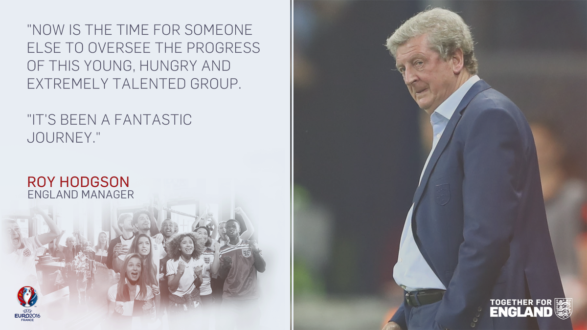 Roy Hodgson lascia la nazionale inglese. L’allenatore dopo la sconfitta contro l’Islanda che ha eliminato l’Inghilterra da Euro 2016 ha annunciato l’addio alla selezione. In conferenza stampa ha detto addio alla panchina inglese ed anche sul profilo Twitter ufficiale della nazionale è stato pubblicato un suo messaggio di congedo: “Adesso è tempo che qualcun altro porti avanti i progressi di questo giovane, affamato ed estremamente talentuoso gruppo. E’ stato un viaggio fantastico”.