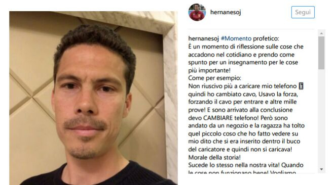 Ormai sembra essere diventato un appuntamento fisso: il ‘momento profetico’ di Hernanes. Sì, perché quel soprannome (‘profeta’) non lo abbandona nemmeno lontano dal campo. Anzi, davanti alla telecamera del suo cellulare continua a dispensare perle della sua saggezza. Su Instagram, con il post di oggi propone di vivere una vita… POP: