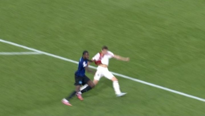 Al 35′ del primo tempo, l’arbitro Oliver fischia un rigore in favore dei nerazzurri per un fallo di Daas su Thuram. Braccio intorno al collo del difensore e decisione netta del direttore di gara che ammonisce anche il difensore dell’Ajax.