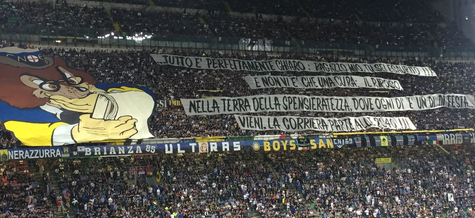 Tutto pronto per Inter-Juventus. Luci a San Siro per il derby d’Italia. I nerazzurri cercano 3 punti per la Champions League, i bianconeri per restare in testa alla classifica. Prima del fischio d’inizio, però, lo spettacolo si è visto sugli spalti: ecco la coreografia dei tifosi dell’Inter.