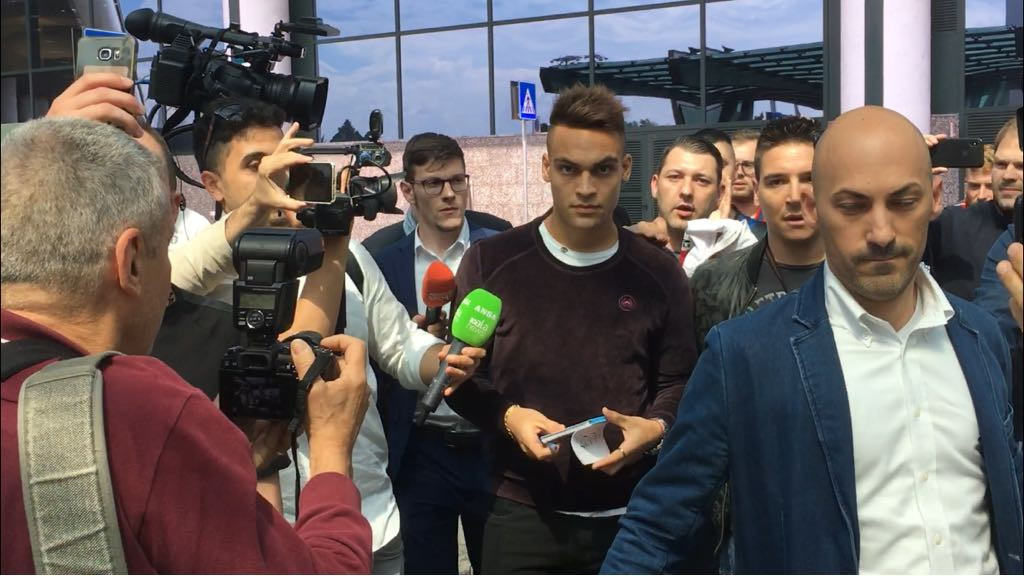 Primi passi (e prime immagini) di Lautaro Martinez da futuro giocatore dell’Inter. L’attaccante argentino è arrivato con un volo da San Paolo atterrato all’aeroporto di Malpensa alle 15.20: il calciatore nella mattinata di domani sosterrà le visite mediche con il club nerazzurro. Alle 16.25, intanto, Lautaro Martinez è arrivato all’hotel Melia dove ha scattato alcune foto con i tifosi presenti.