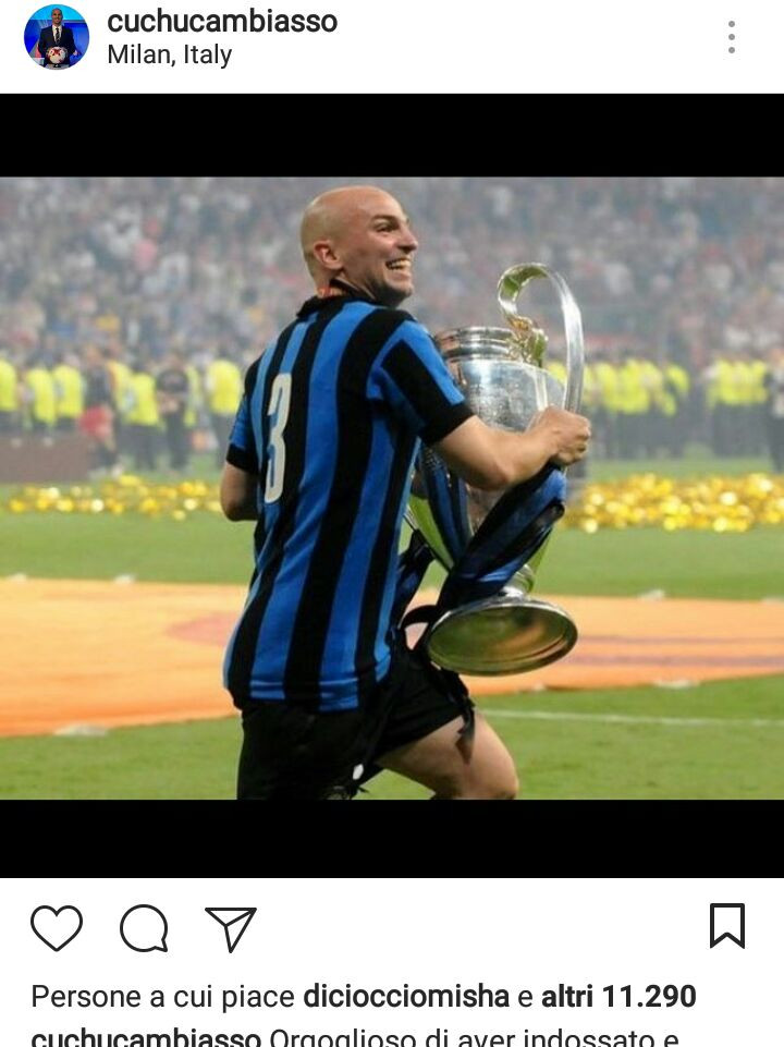 Cambiasso: “Orgoglioso di aver indossato e difeso questa maglia, di aver contribuito a scrivere la storia di questa società. Buon 110° compleanno Inter!”.