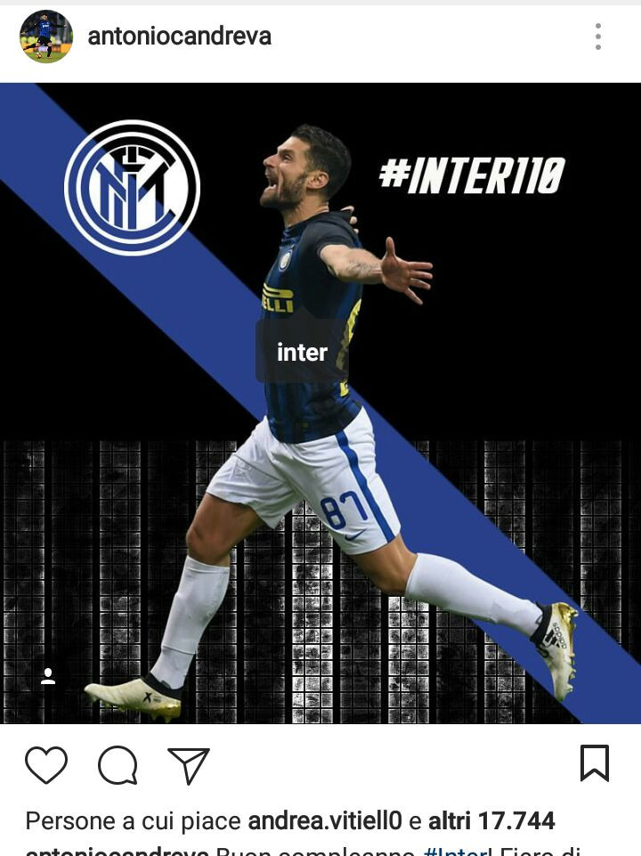 Tra chi veste attualmente i colori nerazzurri c’è Antonio Candreva: “Buon compleanno Inter! Fiero di combattere per questi colori”