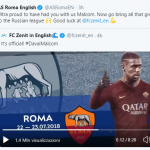 Zenit, sfottò social: Malcom con la maglia della Roma. E i giallorossi rispondono