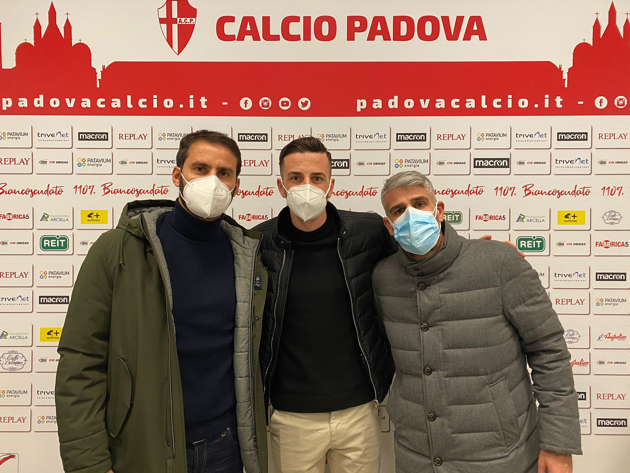 20.05 – Padova, preso il centrocampista Marco Firenze. Arriva in prestito dalla Salernitana. Nella foto con l'agente Vincenzo Pisacane e l'avvocato Dario Bova.