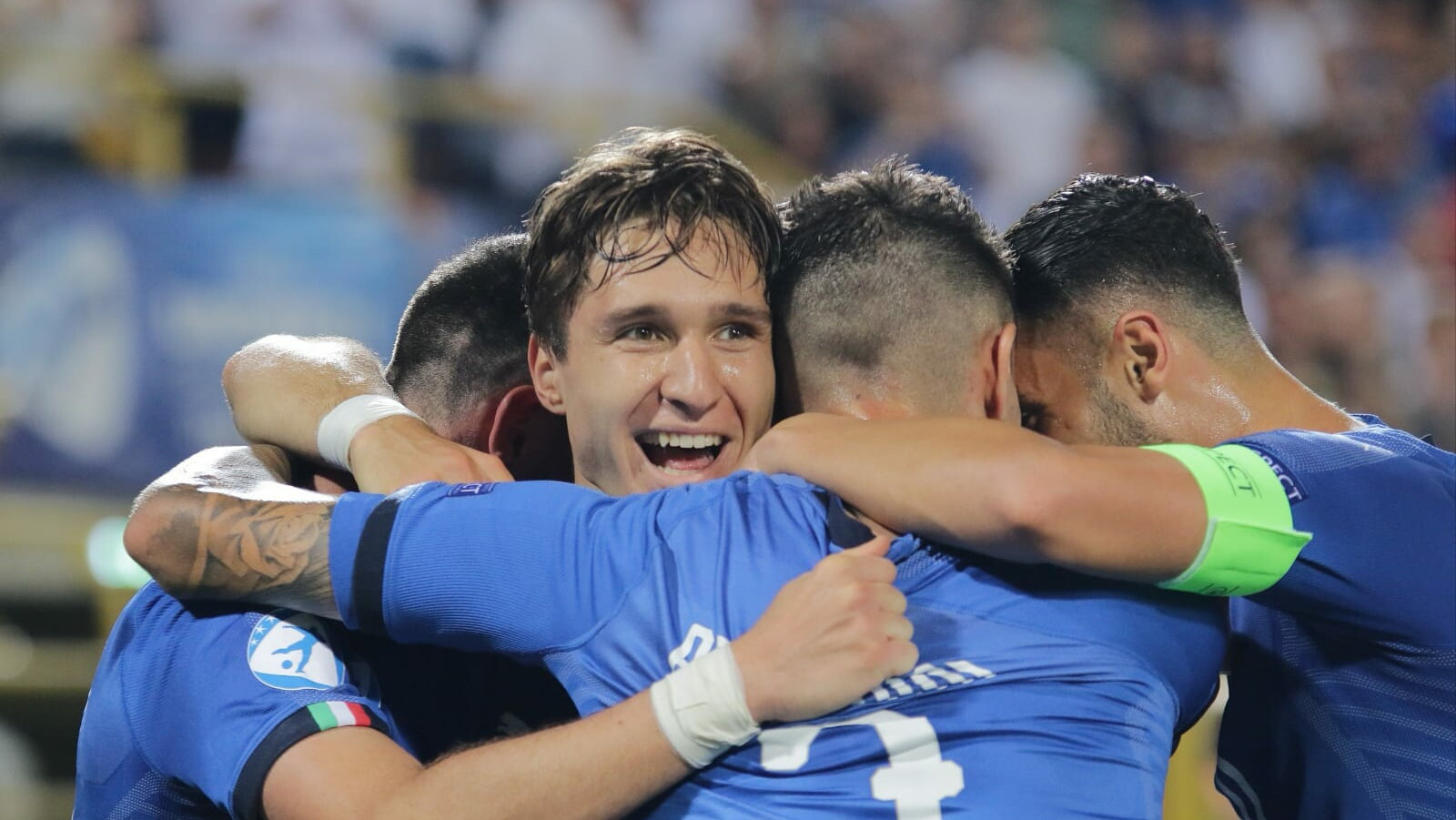 Italia (4-3-3) Meret; Calabresi, Mancini, Bastoni, Pezzella; Barella, Mandragora, Pellegrini; Chiesa, Cutrone, Kean