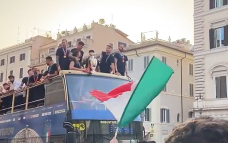 A quasi 24 ore dal successo di Wembley, la festa degli azzurri di Mancini è tutt’altro che finita: dopo la visita al Quirinale di questo pomeriggio, Chiellini e compagni hanno festeggiato per le vie di Roma.