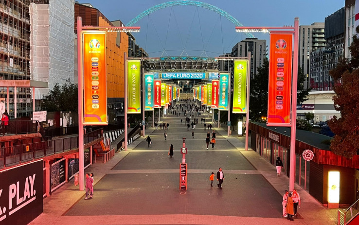 23:30 – Londra e il Wembley Stadium si colorano a poco meno di 24 ore dal calcio d’inzio della finale.