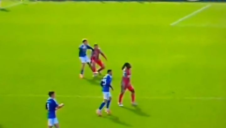 Dopo diversi spintoni, l’attaccante del Como ha colpito il difensore grigiorosso. Episodio che non è sfuggito al VAR.