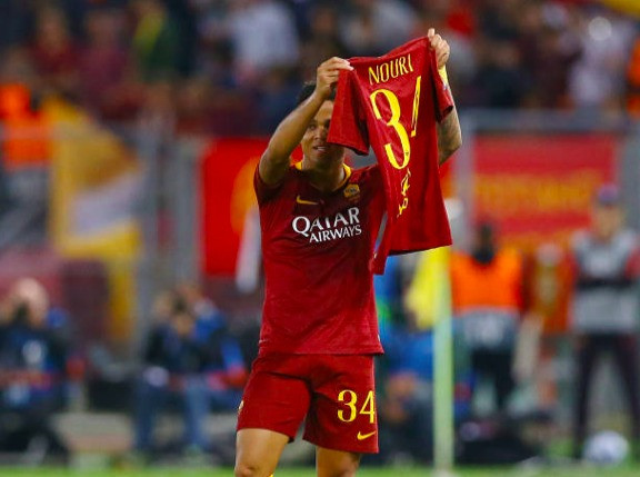 La cartolina del primo gol di Kluivert con la Roma è tutta in quella maglia. Alzata con orgoglio e commozione. Giallorossa e con il 34 sulle spalle. Nouri il nome scritto sopra. Justin per Abdelhak, con il cuore in gola.