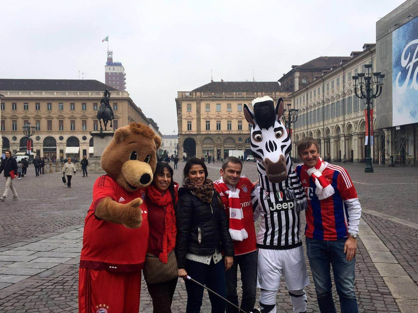 Le mascotte ufficiali delle due squadre si sono date appuntamento in Piazza San Carlo, ed insieme hanno scattato delle foto con i tifosi delle due squadre. Clima ideale, tra sorrisi e gag. Oltre i colori, solo nel nome dell’amicizia e del tifo. La posta in palio è alta, Juventus-Bayern intanto ha già iniziato a regalare spettacolo. Ecco le foto: