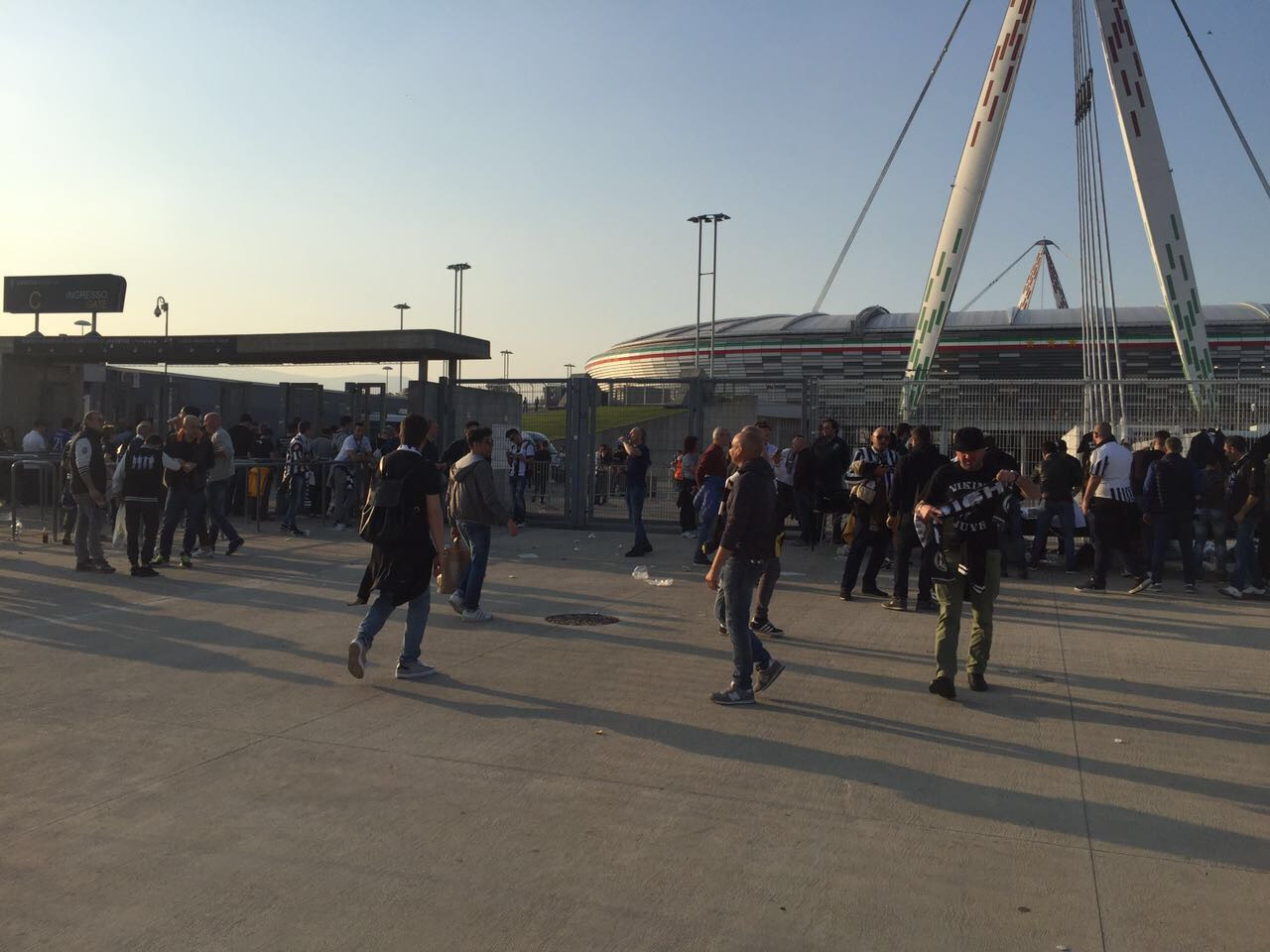 Meno di due ore al calcio d’inizio di Juventus – Barcellona e la febbre fuori dallo Stadium inizia a farsi sentire. Moltissimi i tifosi già in fila davanti agli ingressi per quella che è a tutti gli effetti la partita che vale un’intera stagione. Ecco le immagini fuori dallo stadio.