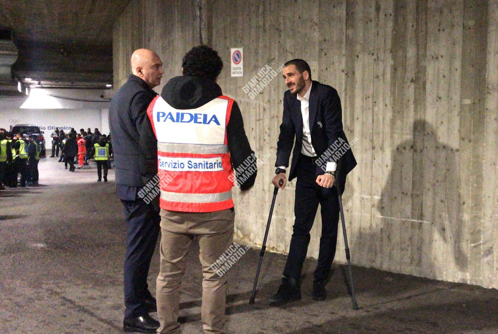 Un problema alla caviglia per Bonucci, sul quale è tornato anche Massimiliano Allegri nel post gara: “Non ha la caviglia messa bene, ma tanto è arrivato Caceres”. Sarà adesso da stabilire l’esatta entità ed i tempi di recupero dell’infortunio di Bonucci che la lasciato l’Olimpico in stampelle (foto in alto).